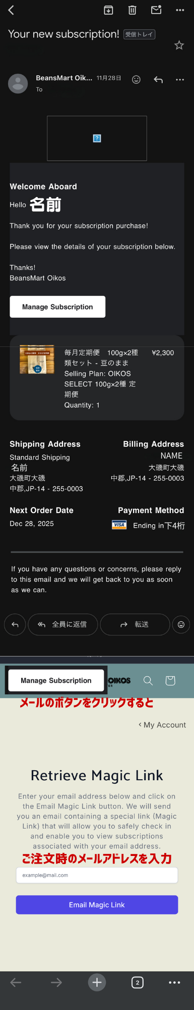 定期便システム(Appstle)の仕様により、一部のメールが英語表記になります。